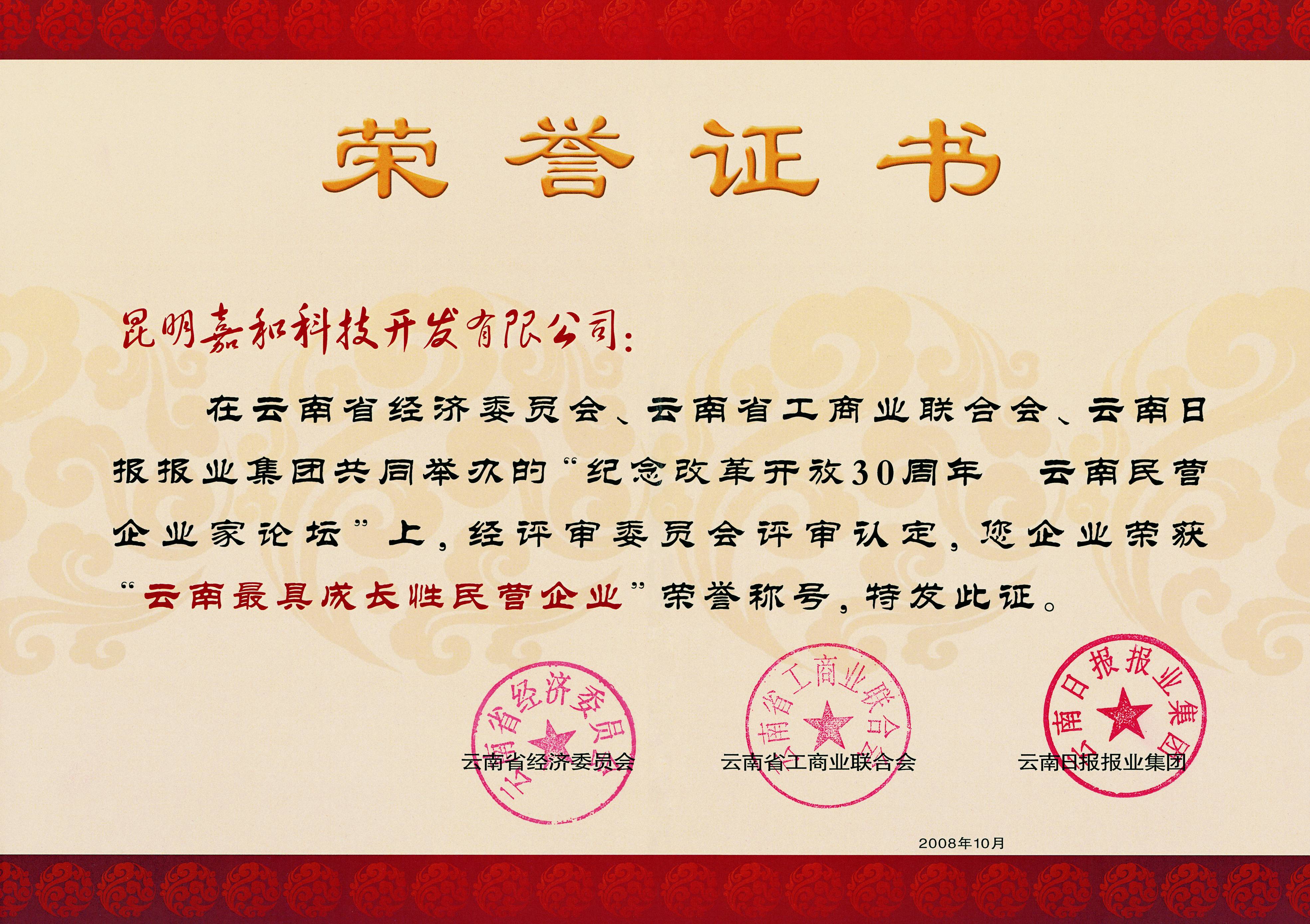 被評(píng)為云南最具成長(zhǎng)性民營(yíng)企業(yè)。