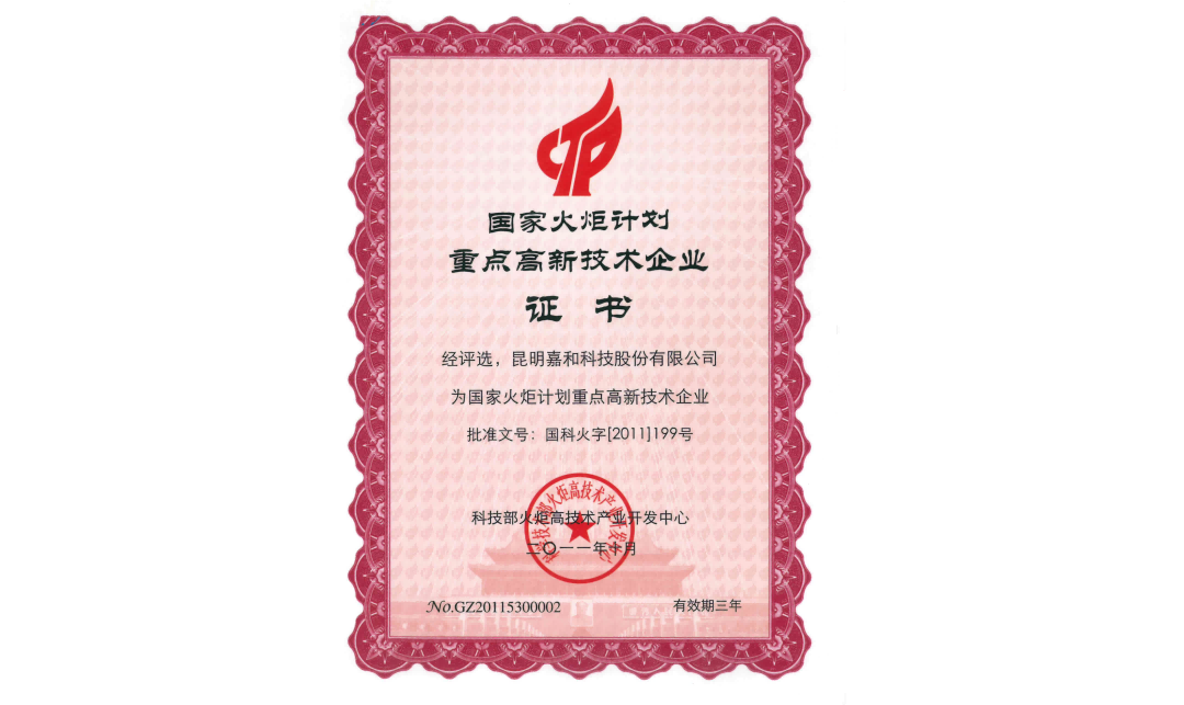 被評(píng)為國(guó)家火炬計(jì)劃重點(diǎn)高新技術(shù)企業(yè)。
