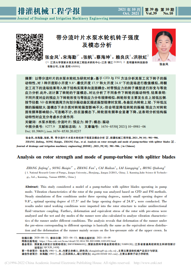 帶分流葉片水泵水輪機轉(zhuǎn)子強度及模態(tài)分析