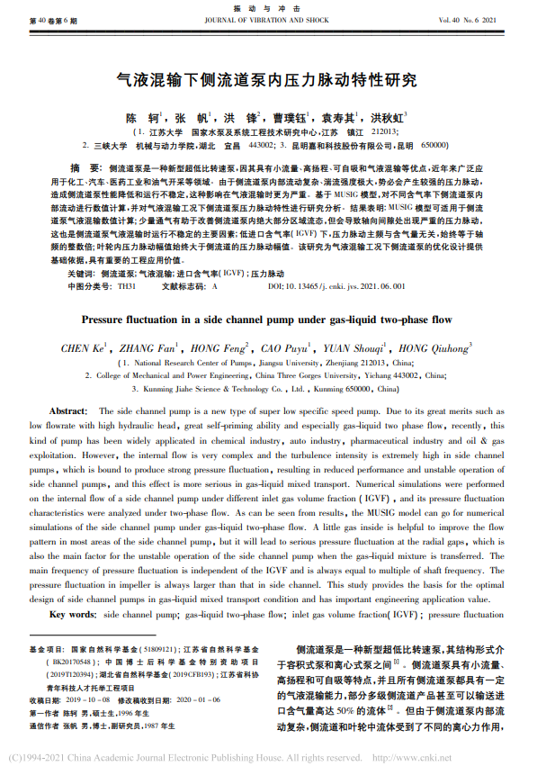 氣液混輸下側(cè)流道泵內(nèi)壓力脈動特性研究