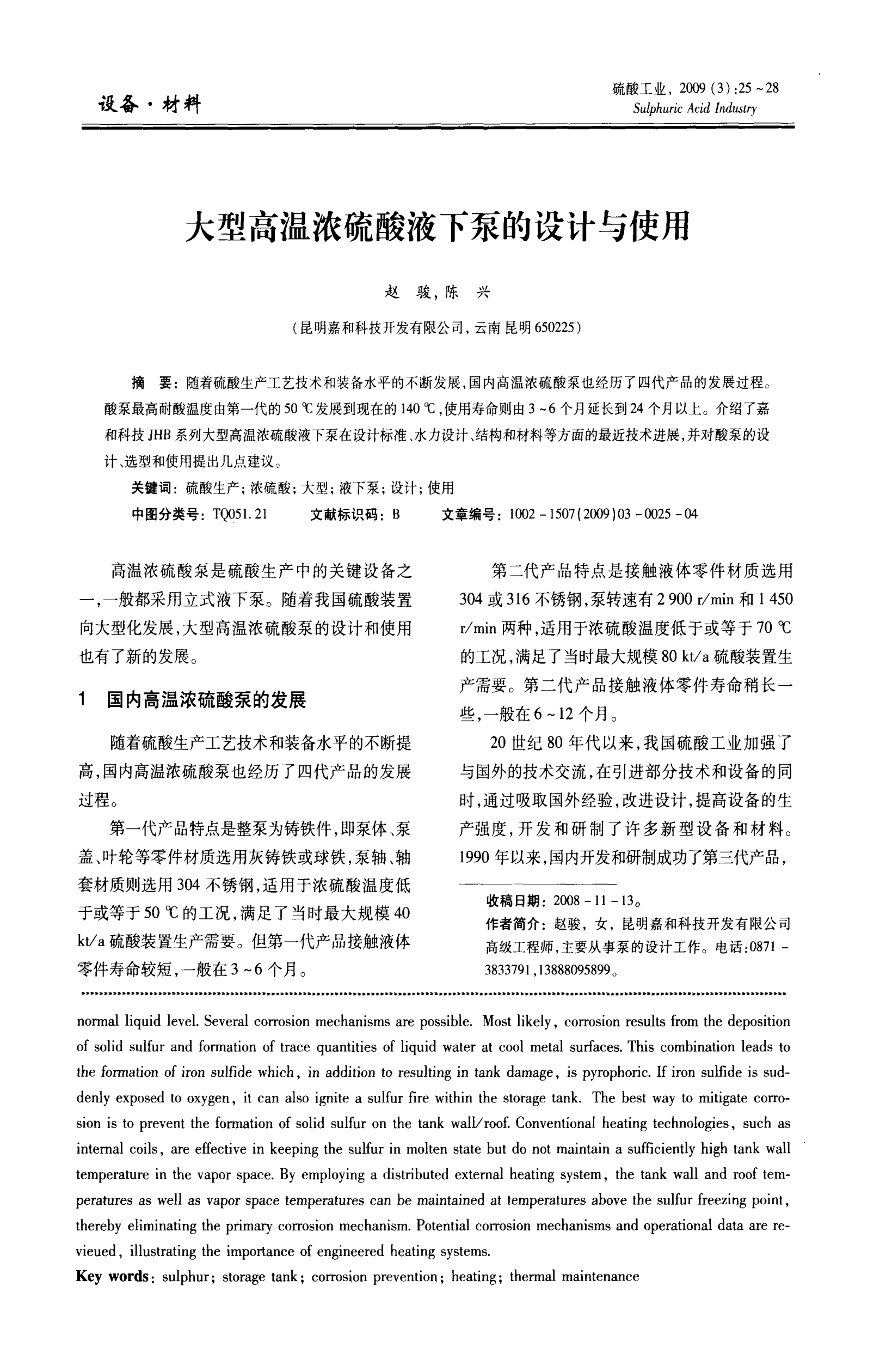 大型高溫濃硫酸液下泵的設(shè)計與使用