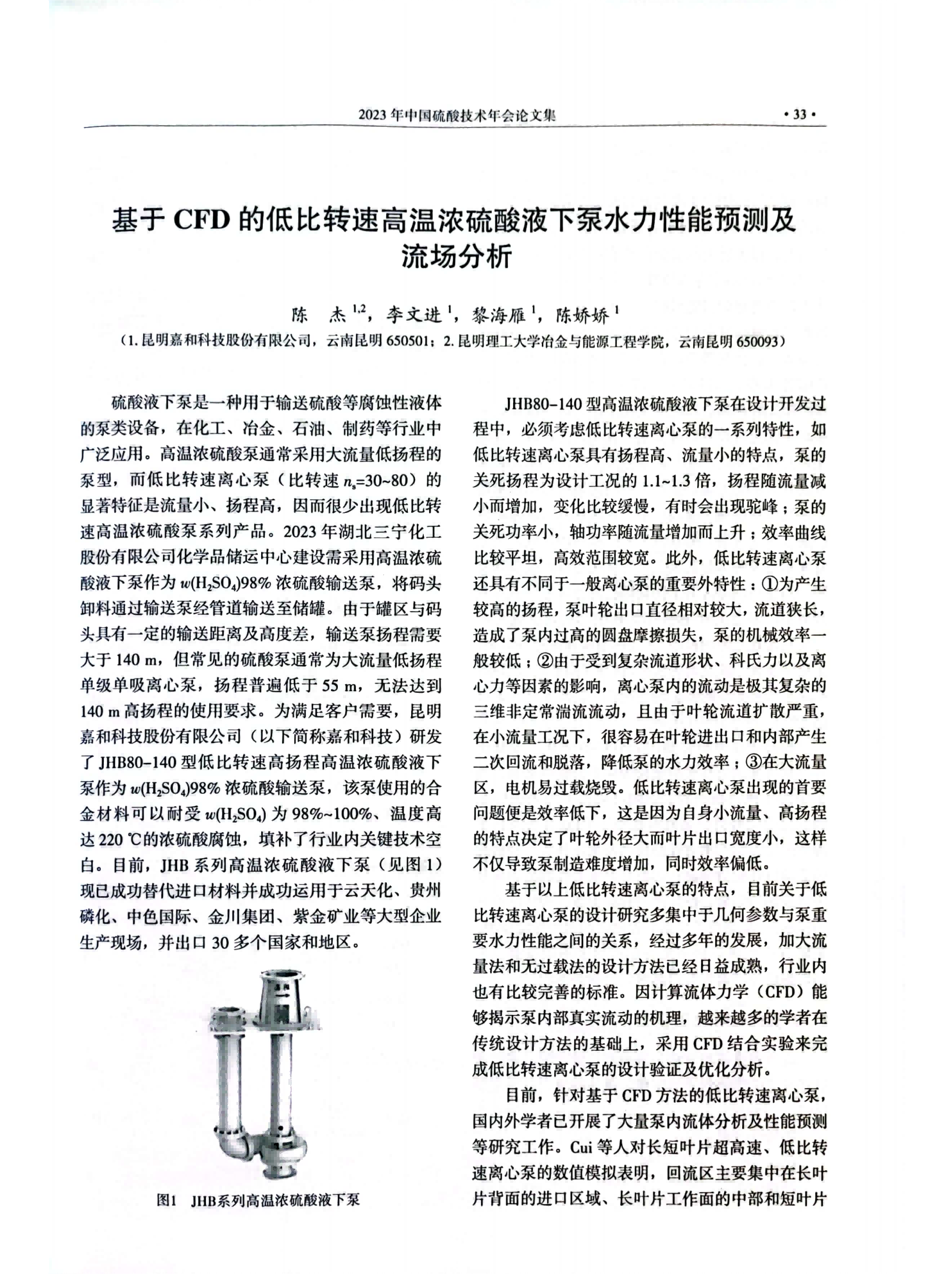 基于CFD的低比轉(zhuǎn)速高溫濃硫酸液下泵水力性能預(yù)測及流場分析