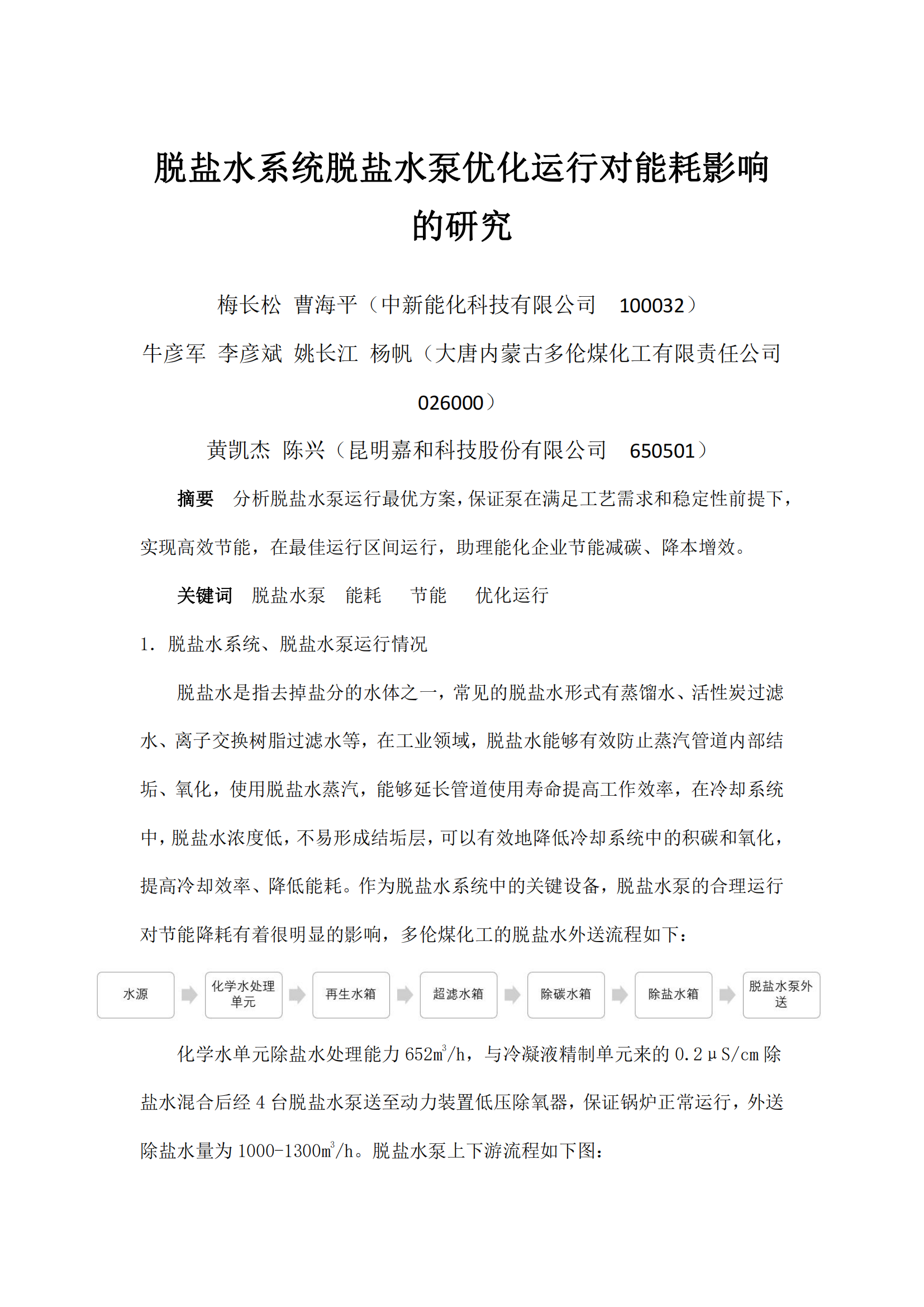 脫鹽水系統(tǒng)脫鹽水泵優(yōu)化運行對能耗影響的研究