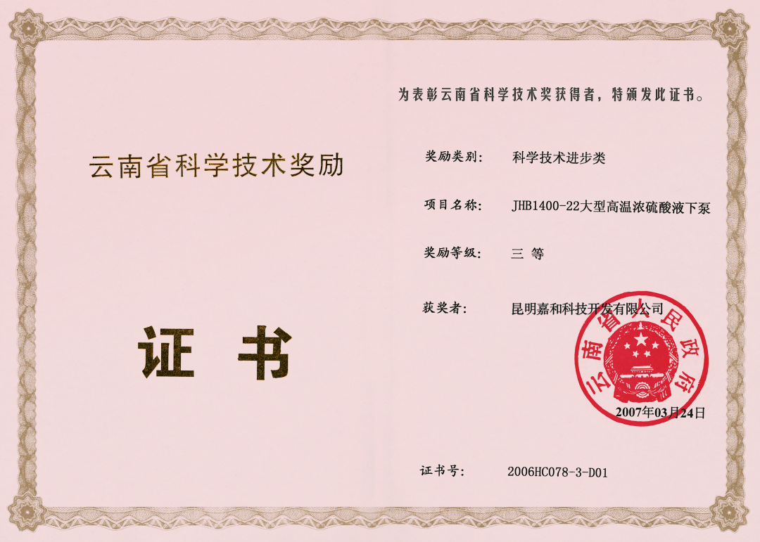 云南省科學(xué)技術(shù)進(jìn)步獎三等獎